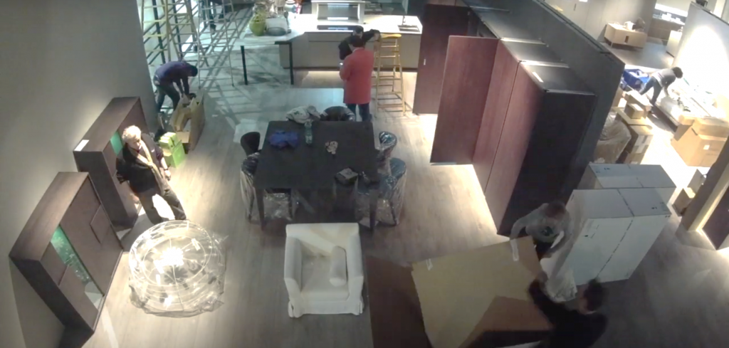 従来ミラノサローネ国際家具見本市 出展スタンドの形状が 水平の面 垂直バネル方式でコロナウイスル対策の為『密閉』『密集』『密接』を防せくだめ出展スタンに天井が設置されていないのが今回の特徴です。